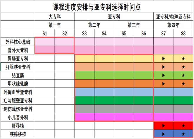 备注: ★表示标准亚专科及最终考核时间点